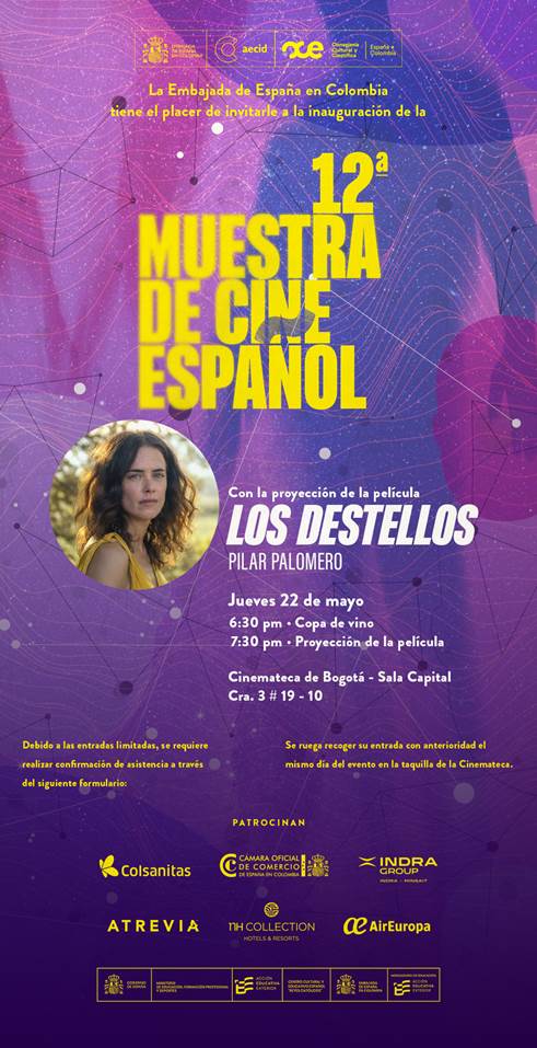 A través de su Consejería Cultural y Científica, la Embajada de España en Colombia inaugurará el jueves entrante la 12ª Muestra de Cine Español, que irá hasta el 2 de junio de 2025 en Bogotá, Medellín, Cartagena, Cali, Pereira, Santa Marta, Jericó, Villa de Leyva, Funza y Facatativá.