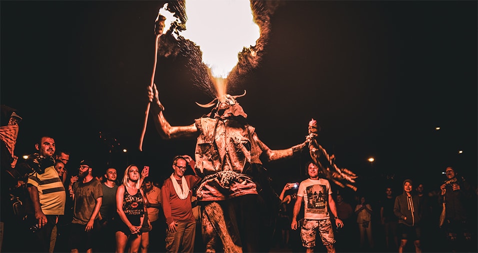 Muy apreciable es el correfoc nocturno, desfile con fuegos artificiales que portan por grupos, ataviados como diablos o seres extraordinarios de la tradición medieval.